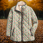 Prešita jakna Aveline Vintage Cvetlični Umjetniški Natis združuje brezčasno umetnost in vsakodnevno udobje. Okrašena z elegantnim vintage cvetličnim vzorcem in izdelana iz mehkega prešitga blaga, vas ovije v lahko toploto in brezskrbno sofisticiranost. Vsak detajl – od zapletenega tiska do natančno oblikovane silhuete – odraža klasično lepoto, ponovno predstavljeno za sodobno življenje.
