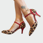 Sára Sofisticirana Elegantni čevlji z visokim petom Ti čevlji z visokim petom z živalskim vzorcem združujejo sofisticirano obliko, natančno prileganje in udobje za cel dan. Tanek petek podaljšuje silhueto, sponka okoli gležnja zagotavlja stabilen korak, univerzalen dizajn pa dopolnjuje tako formalne kot tudi ležerne outfite.