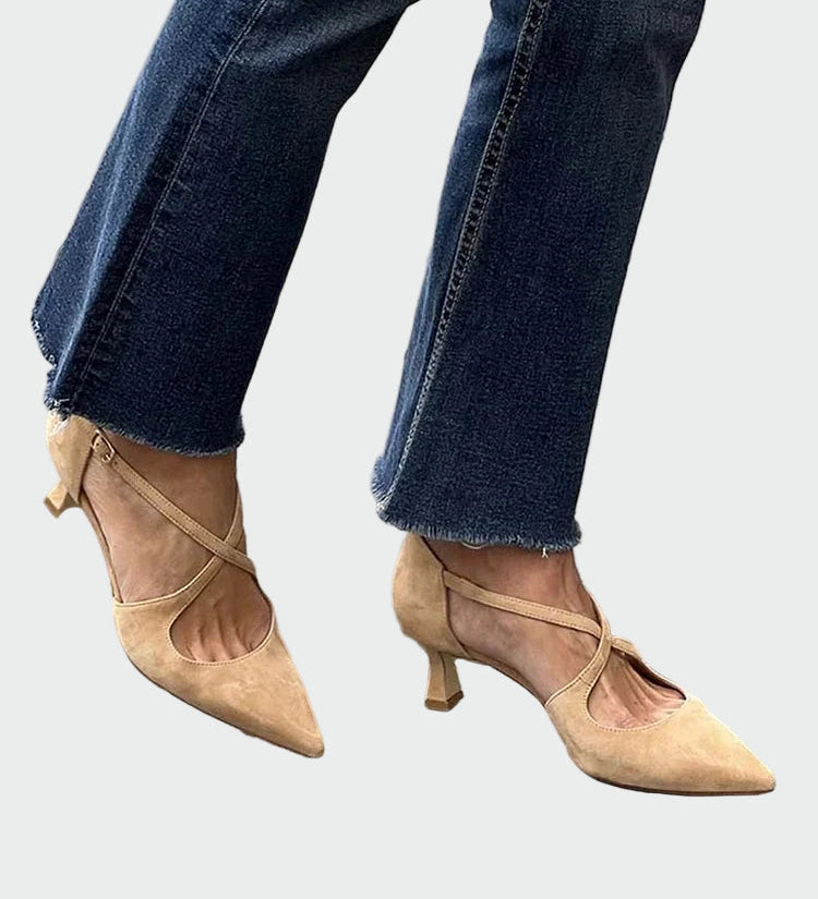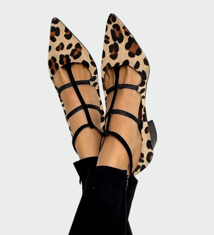 Karolína Elegantne Špičaste Čevlje z Prečnimi Trakovi