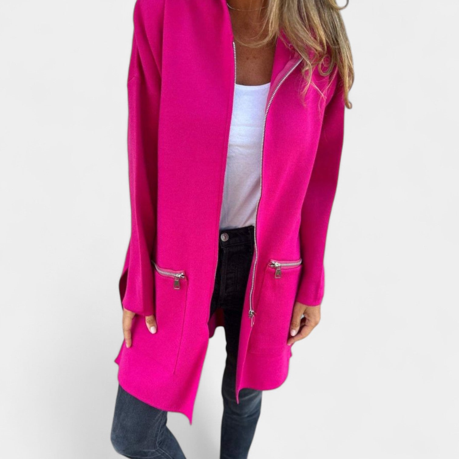 Mikina Tereza združuje športni šarm z enostavno eleganco. Zaradi ravnega kroja, mehkega materiala in praktičnega zadrge bo vaš idealen spremljevalec za prosti čas in vsakodnevno nošenje. Na voljo je v več barvah, enostavno se prilagodi vašemu slogu in garderobi.