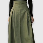 Klasično A-linijsko krilo z elegantnim krojem in detajlom pasu za laskavo prileganje. Univerzalno kombinabilno za vsakodnevno nošenje in posebne priložnosti.