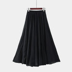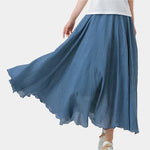 Oživite svojo poletno garderobo s to dolgo krilo iz lahkega materiala. Širok kroj in naravno gibanje ustvarjata eterealni videz, ki očara ob vsakem koraku.