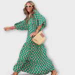 Stilne maxi obleke - Popolna kombinacija udobja in elegance z izrazitim geometrijskim vzorcem.