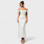 Ione - Bodycon obleka z odprtimi rameni in nabiranjem