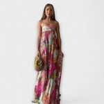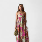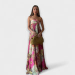 Šik Retro Brezramenska Plisirana Maxi Obleka