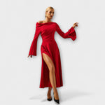Willa - Midi obleka z odprtimi rameni in nabranimi balonastimi rokavi