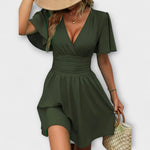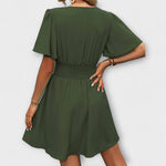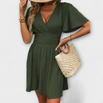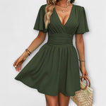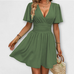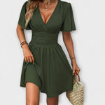 Winslet - Obleka z Nabrano Pasom in V-Izrezom