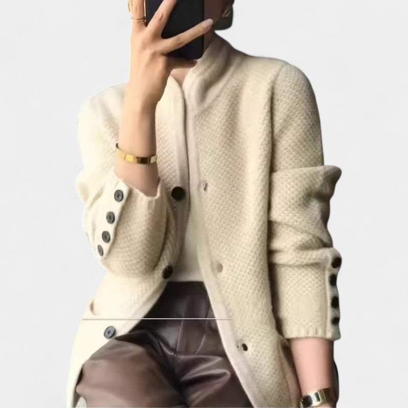 Predstavljajte si, da se obdajte z ultimativnim udobjem in pridihom luksuza s kardiganom Alissa. Narejen iz nežnega, kakovostnega materiala, ki se počuti kot nežen objem, je pravi spremljevalec za hladne dni in mirne večere. Alissa ni le oblačilo – je izkušnja, ki poudari vaš stil in vsakemu dnevu doda pridih elegance.