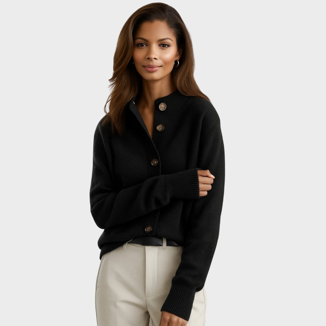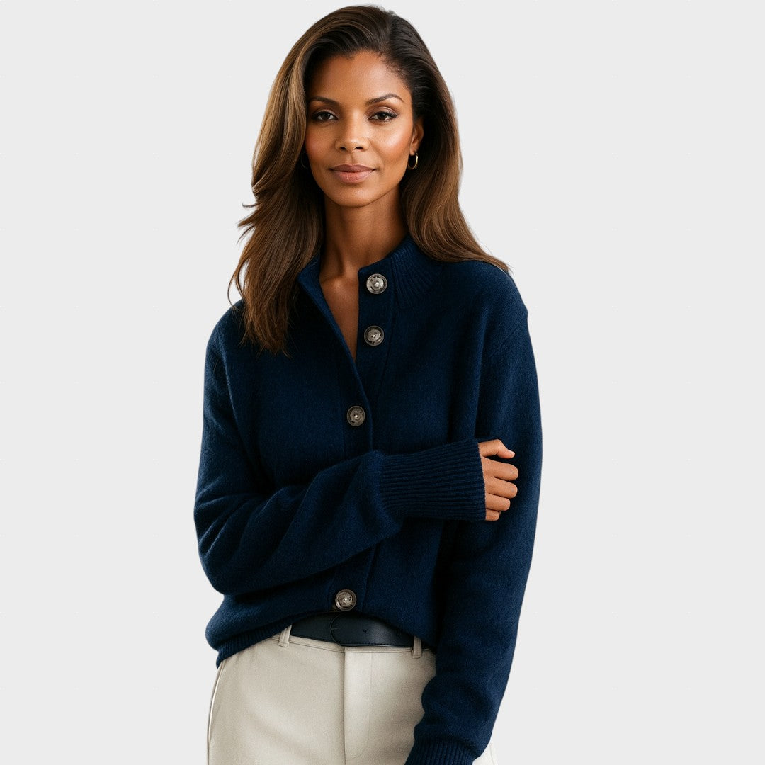 Gumbasti kardigan Blanka je popolna kombinacija udobja in brezčasne elegance. Narejen iz mehke, tople pletenine, ima sproščen kroj, klasično gumbasto sprednjo stran in subtilen ovratnik za izpopolnjen videz. Enostavno ga je stilizirati za delovne dni, konce tedna ali ga obleči čez vaše najljubše osnove.