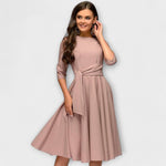 Dodajte eleganten element svoji garderobi s temi čudovitimi midi oblekami. Oblikovanje združuje laskavo silhueto z modernim pridihom. Pasni trak poudarja postavo in zagotavlja popolno prileganje. S tremi četrtinami rokavi in padajočo krilom so te obleke idealne za slavnostne priložnosti, elegantne zabave ali celo za vsakodnevno nošenje, ko želite imeti pridih sofisticiranosti.