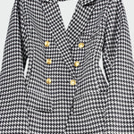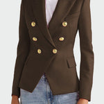 Impozantno sakot z aplikacijo, ki objema silhueto in poudarja stil. Ima eleganten ovratnik s klapnimi, dvojno sprednje zapiranje na gumbke in dve stranski žepki s klapno. Njegov brezčasni dizajn ga naredi idealnega tako za delovne priložnosti kot za večerne izhode, kar zagotavlja samozavest in eleganco v vsaki situaciji.