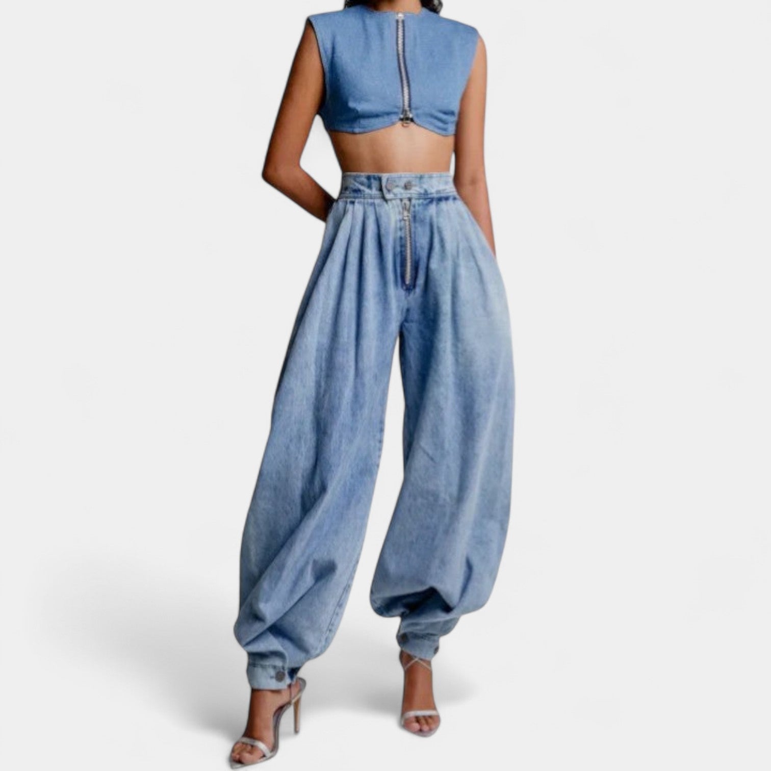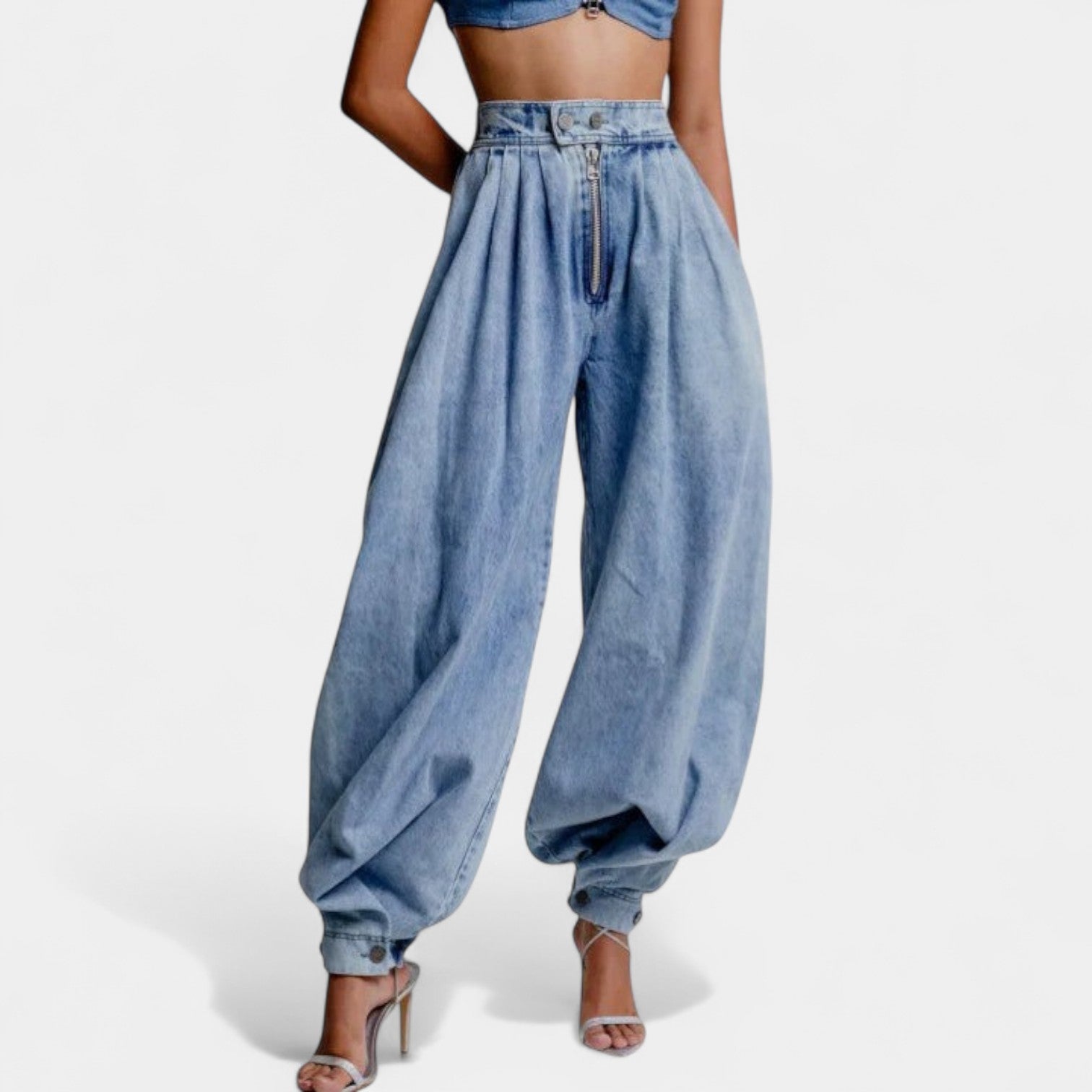 Jeansi Monika so zasnovani tako, da poudarijo tvojo silhueto in ti hkrati ponudijo svobodo ter sproščen videz. Zaradi svoje kroja se enostavno kombinirajo z vsakršnim vrhom in postanejo osnova tvoje vsakdanje garderobe.