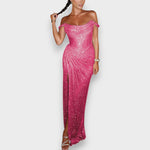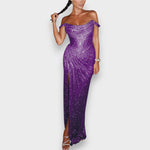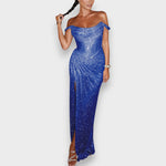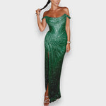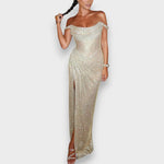 Natja - Bleščeča Maxi Obleka z Odkritimi Rameni